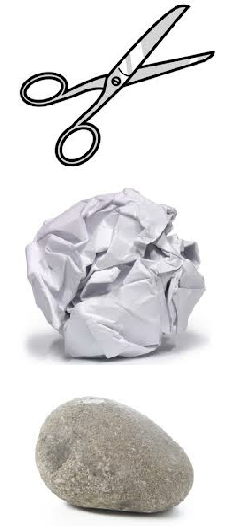 Por ejemplo, el famoso cuento de que las tijeras cortan el papel, (tijeras R papel) y el papel envuelve la piedra (papel R piedra) pero... ¡Las tijeras no ganan a la piedra! Es al revés, la piedra rompe las tijeras. Este cuento despierta la curiosidad de los niños porque va en contra de la idea preconcebida de que "todo es transitivo".