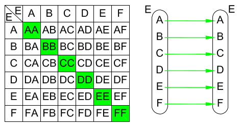 La identidad de un conjunto \(E\) es simplemente la aplicación que a cada elemento de \(E\) asocia este mismo elemento: