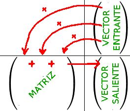 Si a María le damos el vector: \(\overrightarrow{precios}= \begin{pmatrix} 1\\2\\3 \end{pmatrix}\) ella nos entregará el vector: \(\overrightarrow{costes}= \begin{pmatrix} 6\\6\\7 \end{pmatrix}\). Es fundamental entender las matrices como una "cosa" que coge vectores de un espacio vectorial y entrega vectores en (a priori otro) espacio vectorial. Por lo tanto una matriz caracteriza una aplicación entre dos conjuntos: